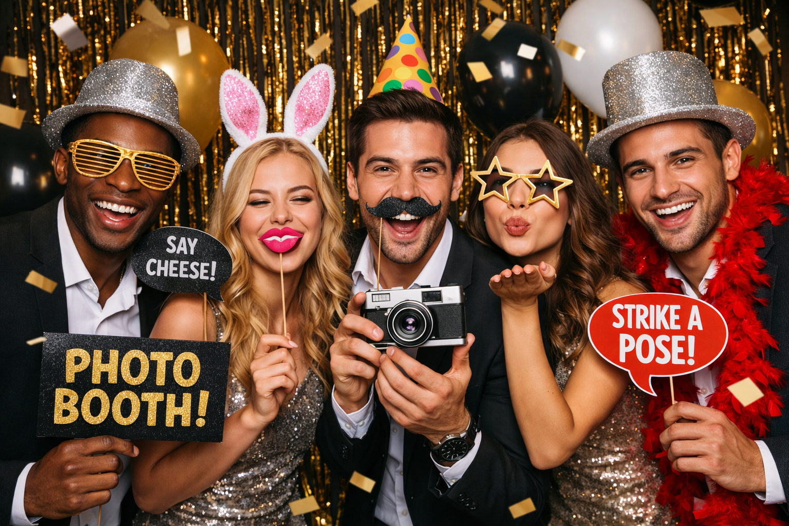 A cost-friendly, digital-only photobooth package perfect for birthdays, corporate functions and “just because” celebrations. Guests enjoy a hosted retro-style booth with unlimited sessions, fun props and a custom design on every strip, all delivered digitally with no print costs.